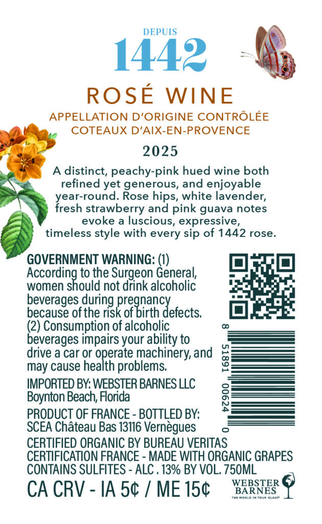 A rosé from organically grown grapes with an inviting nose of peaches, cantaloupe and pink cherries, lifted by tangerine, grapefruit peel, dried flowers and a touch of flint. The medium-bodied palate is tangy and crisp, showing dried apple and pear alongside juicy citrus and subtle pink peppercorn spice. A fine mineral thread runs through to the refreshing, seductive finish.
